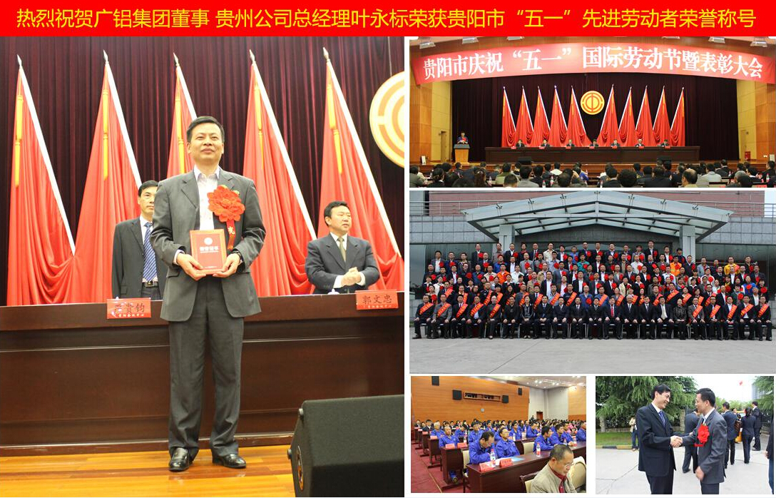 ▼4月29日,廣鋁集團董事貴州公司總經(jīng)理葉永標榮獲貴陽(yáng)市“先進(jìn)勞動(dòng)者”榮譽(yù)稱(chēng)號