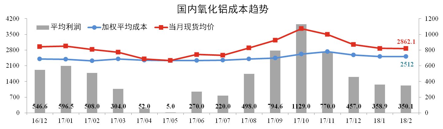 分析認為:二月份煤炭?jì)r(jià)格沖高回落,但幅度較小對成本影響不大。燒堿價(jià)格在恢復性回調后出現明顯上漲,將推升3月份氧化鋁成本。而氧化鋁價(jià)格整體上行動(dòng)力不足,預計3月份氧化鋁利潤繼續收窄。