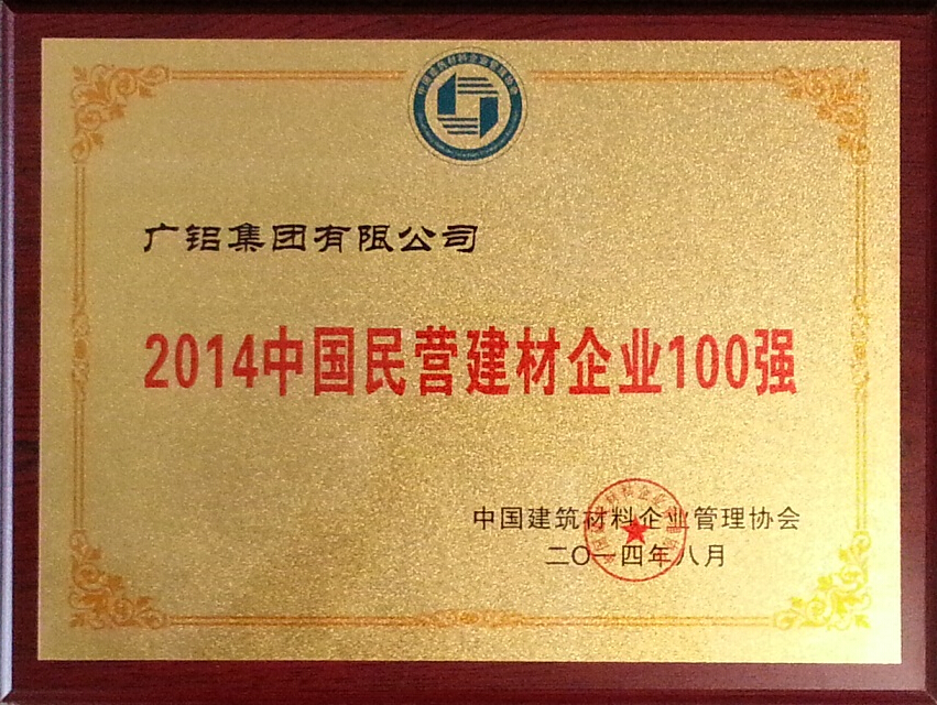 發(fā)稿時(shí)間:2014-10-20近日,由中國建筑材料企業(yè)管理協(xié)會(huì )組織召開(kāi)的“2014中國建材企業(yè)發(fā)展論壇暨2014中國建材企業(yè)500強、民營(yíng)建材企業(yè)100強、最具成長(cháng)性建材企業(yè)100強發(fā)布會(huì )”在京召開(kāi)。繼2013年喜獲“中國建材企業(yè)500強”、“中國民營(yíng)建材企業(yè)100強”兩項榮譽(yù)后,廣鋁集團憑借驕人的成績(jì)、迅猛地發(fā)展勢頭再攬這兩項殊榮,并且在“中國建材企業(yè)500強”排名中,位列第37位,在“中國民營(yíng)建材企業(yè)100強”排名中,位列第18位。
