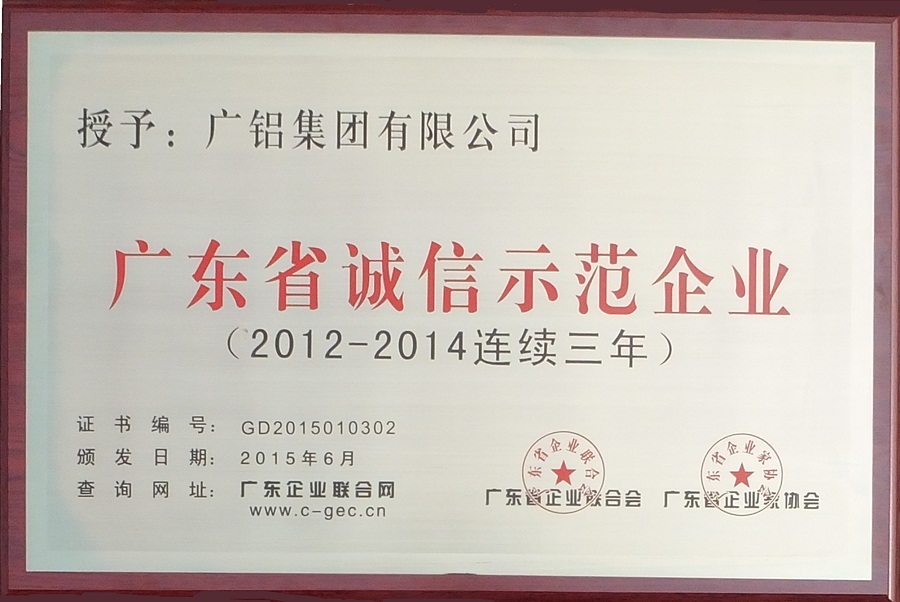 廣鋁集團連續三年獲“廣東省誠信示范企業(yè)”殊榮
