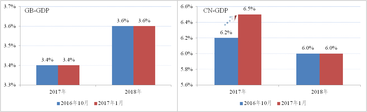 2016年全球經(jīng)濟可謂不溫不火。一方面主要國家經(jīng)濟繼續復蘇;另一方面全球經(jīng)濟增長(cháng)乏力,多數國家經(jīng)濟增速仍低于潛在增長(cháng)率。1月份,國際貨幣基金組織(IMF)發(fā)布最新《世界經(jīng)濟展望》報告中,預計中國2017年經(jīng)濟增速為6.5%,較上期上調0.3個(gè)百分點(diǎn);維持世界經(jīng)濟3.4%不變。