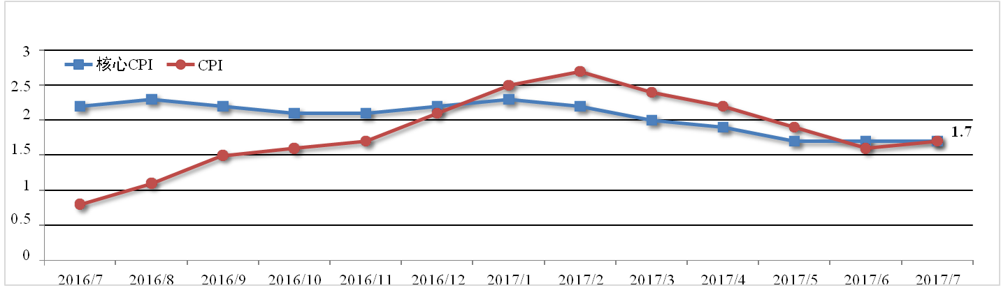 7月美國CPI同比為1.7%,較上月上升0.1個(gè)百分點(diǎn),不及預期的1.8%,核 心CPI同比亦增長(cháng)1.7%。其中住房支出成本與電信服務(wù)費用疲軟是導致美國核 心CPI走弱的最主要原因。