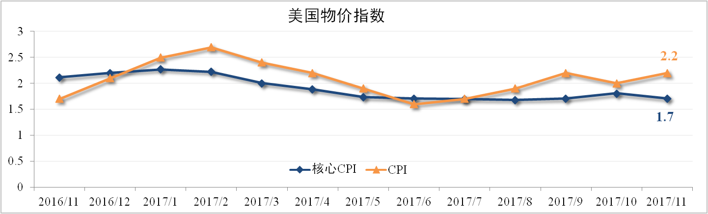 11月美國CPI為2.2%,符合市場(chǎng)預期,主要受能源價(jià)格上漲提振。剔除能源因素的核心CPI為1.7%,較上月下滑0.1個(gè)百分點(diǎn),低于市場(chǎng)預期,主要是受住房?jì)r(jià)格增速放緩以及醫療服務(wù)價(jià)格下跌影響所致。