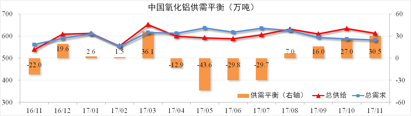 分析認為:雖然采暖季錯峰生產(chǎn)已經(jīng)逐漸影響國內氧化鋁產(chǎn)量,但內蒙古鑫旺、云南文山鋁業(yè)等新增氧化鋁產(chǎn)能基本開(kāi)始投產(chǎn),同時(shí)下游電解鋁廠(chǎng)限產(chǎn)使得氧化鋁需求下降,因此12月氧化鋁依然會(huì )保持供過(guò)于求的局面。